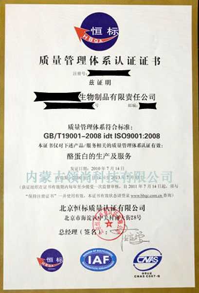 ISO9001質(zhì)量管理體系認(rèn)證證書